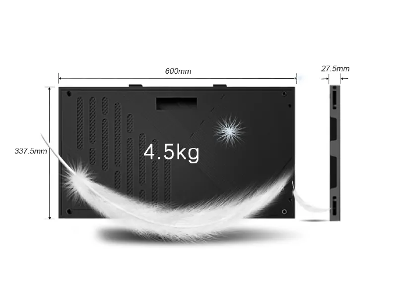 | Panel size (W x H x D/mm) | 600 x 337.5 x 27.5 | |||||